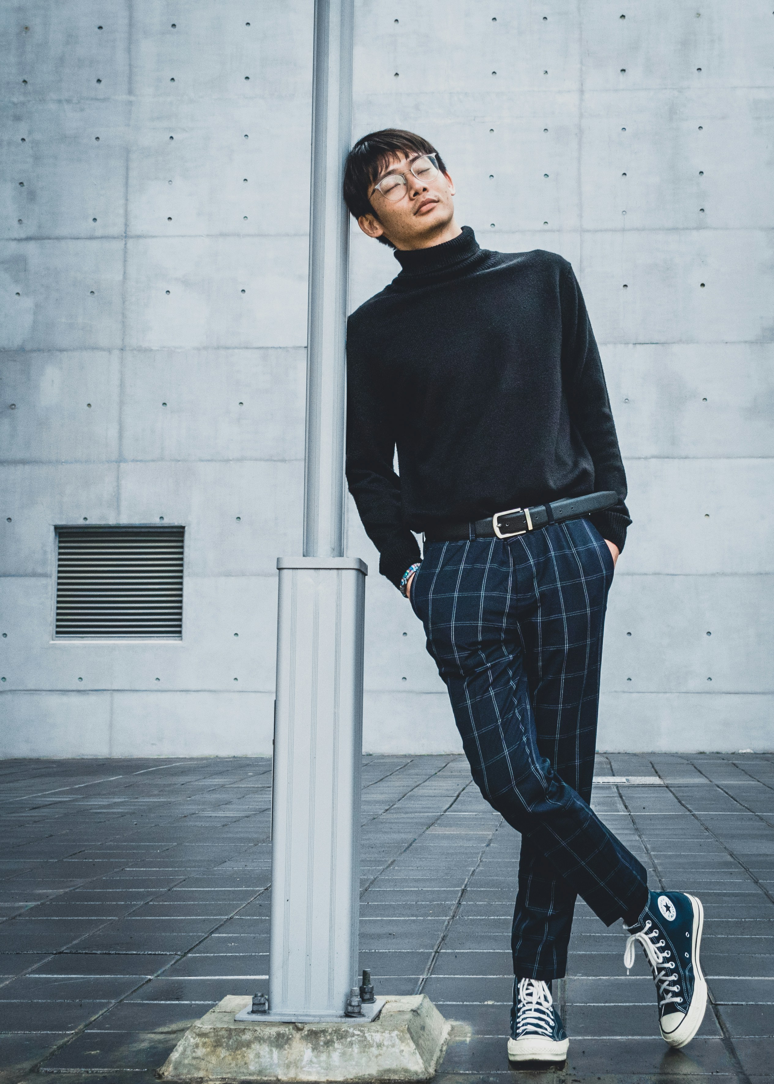 Man In Black Sweater And Blue And White Plaid Pants Standing Beside White Concrete Wall During Photo Free Image On Unsplash
